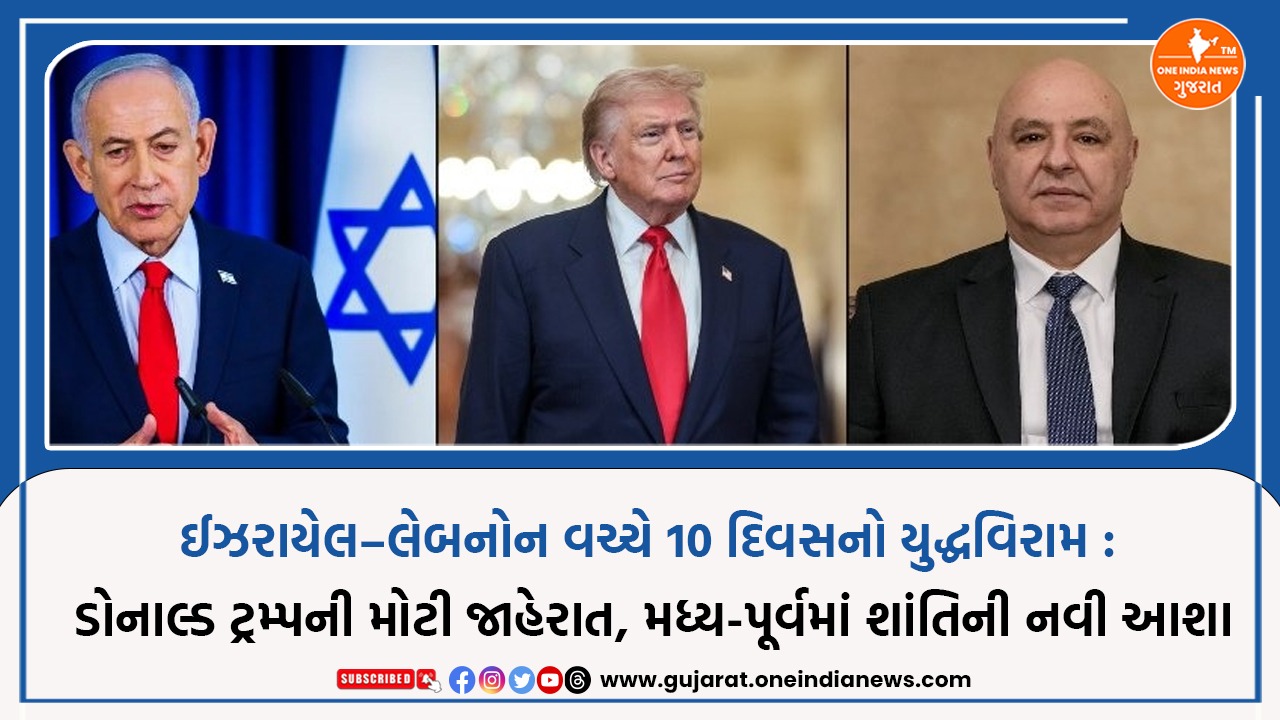 અમેરિકાના પ્રમુખ ડોનાલ્ડ ટ્રમ્પએ 16 એપ્રિલ 2026ના રોજ ઈઝરાયેલ અને લેબનોન વચ્ચે 10 દિવસના યુદ્ધવિરામની મહત્વપૂર્ણ જાહેરાત કરી છે. ટ્રમ્પે પોતાના સોશિયલ મીડિયા પ્લેટફોર્મ ‘Truth Social’ પર માહિતી આપતા ?...
