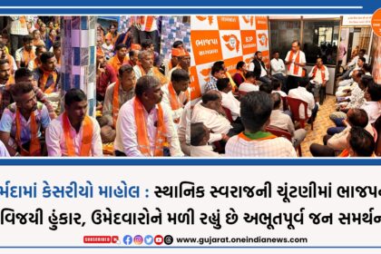 નર્મદા જિલ્લામાં આગામી જિલ્લા પંચાયત, તાલુકા પંચાયત અને નગરપાલિકાની ચૂંટણીઓને લઈને રાજકીય ગરમાવો ચરમસીમાએ પહોંચ્યો છે. ભારતીય જનતા પાર્ટી દ્વારા કરવામાં આવી રહેલા પ્રચંડ પ્રચાર અને ઉમેદ?...