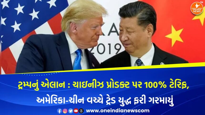 અમેરિકાના રાષ્ટ્રપતિ ડોનાલ્ડ ટ્રમ્પે ચીન સામે વેપાર મોરચે એક મોટું અને ઐતિહાસિક પગલું જાહેર કર્યું છે. ટ્રમ્પે જાહેરાત કરી છે કે 1 નવેમ્બર 2025થી અથવા તે પહેલાંથી ચીનમાંથી આયાત થતી તમામ વસ્તુઓ પર 100% ટેરિફ લાદવામાં આવશે. આ નિર્ણયથી અમેરિકન બજારમાં ચીની પ્રોડક્ટ્સની કિંમતો બમણી થવાની શક્યતા છે, જે બંને દેશો વચ્ચેના વેપાર સંબંધોને ફરીથી તણાવપૂર્ણ દિશામાં લઈ જઈ શકે છે.
