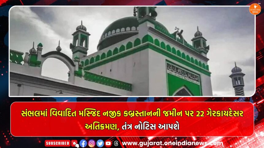 ઉત્તર પ્રદેશના સંભલમાં આવેલી વિવાદિત શાહી જામા મસ્જિદ નજીકના કબ્રસ્તાનની જમીન પર ગેરકાયદેસર અતિક્રમણની ફરિયાદો બાદ જિલ્લા પ્રશાસને સોમવારે (30 ડિસેમ્બર) ભારે પોલીસ બંદોબસ્ત વચ્ચે જમીન માપણીની કાર્યવાહી હાથ ધરી હતી. આ તપાસ દરમિયાન કુલ 22 ગેરકાયદેસર અતિક્રમણ સામે આવ્યા છે.