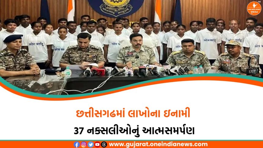 છત્તીસગઢના દંતેવાડા જિલ્લામાં 30 નવેમ્બરના રોજ નક્સલવાદ વિરુદ્ધની અભિયાનમાં મોટી સિદ્ધિ મળી જ્યારે એક સાથે 37 નક્સલવાદીઓએ હથિયાર મૂકીને આત્મસમર્પણ કર્યું. આત્મસમર્પણ કરનારાઓમાં 12 મહિલા નક્સલીઓ સહિત કુલ 27 ઇનામી નક્સલીઓ સામેલ છે, જેમના પર કુલ ₹65 લાખનું ઇનામ જાહેર હતું. આ તમામ નક્સલીઓએ DRG (District Reserve Guard) કાર્યાલય, દંતેવાડામાં વરિષ્ઠ પોલીસ અધિકારીઓની હાજરીમાં આત્મસમર્પણ કર્યું.