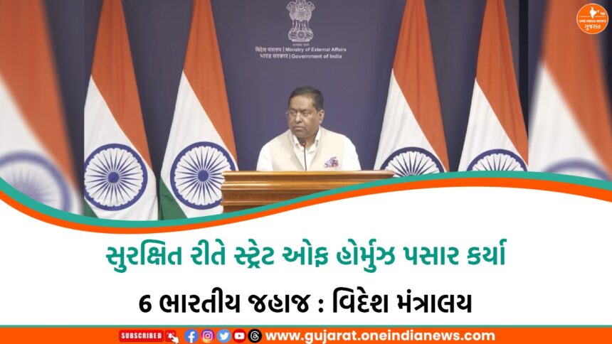 પશ્ચિમ એશિયામાં વધતી તણાવભરી પરિસ્થિતિ વચ્ચે ભારત માટે એક રાહતભર્યો સમાચાર સામે આવ્યો છે. Ministry of External Affairs (MEA)એ જણાવ્યું છે કે અત્યાર સુધીમાં LPG અને LNG જેવા મહત્વપૂર્ણ ઉત્પાદનો લઈ જઈ રહેલા 6 ભારતીય જહાજો સુરક્ષિત રીતે સ્ટ્રેટ ઓફ હોર્મુઝ પસાર કરી ચૂક્યા છે.