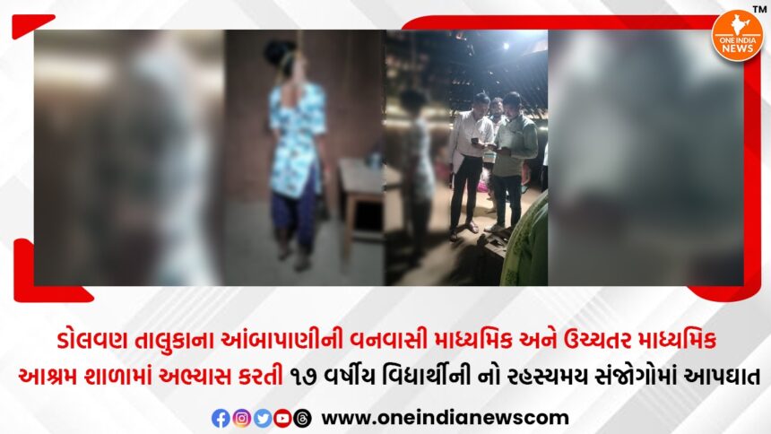 One India News > News > Gujarat > ડોલવણ તાલુકાના આંબાપાણીની વનવાસી માધ્યમિક અને ઉચ્ચતર માધ્યમિક આશ્રમ શાળામાં અભ્યાસ કરતી ૧૭ વર્ષીય વિદ્યાર્થીની નો રહસ્યમય સંજોગોમાં આપઘાત