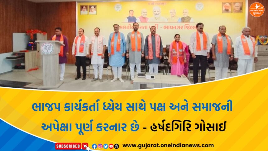 સ્થાનિક સ્વરાજની આગામી ચૂંટણીઓ સંદર્ભે ભાવનગર જિલ્લા ભાજપની બેઠકમાં અધ્યક્ષ દિગ્વિજયસિંહ ગોહિલના નેતૃત્વમાં કેન્દ્રીય મંત્રી, રાજ્યના મંત્રી અને પદાધિકારીઓનું માર્ગદર્શન મળ્યું જેમાં મુખ્ય જિલ્લા પ્રભારી હર્ષદગિરિજી ગોસાઈ એ કહ્યું કે, ભાજપ કાર્યકર્તા ધ્યેય સાથે પક્ષ અને સમાજની અપેક્ષા પૂર્ણ કરનાર છે.