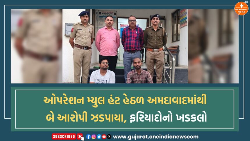 અમદાવાદ જિલ્લામાં ઓપરેશન મ્યુલ હંટ અંતર્ગત સાયબર ફ્રોડ આચરનારી એક ટોળકીના બે મુખ્ય આરોપીઓની ચાંગોદર પોલીસે ધરપકડ કરીને કાયદેસરની કાર્યવાહી હાથ ધરી છે. આ ટોળકી મ્યુલ બેંક એકાઉન્ટનો ઉપયોગ કરીને ભારતના વિવિધ રાજ્યોમાં છેતરપિંડી આચરતી હતી. મહત્ત્વનું છે કે, ભારત સરકારના 14સી, નવી દિલ્હી તરફથી મ્યુલ બેન્ક એકાઉન્ટ અંગે મળેલી ચોક્કસ માહિતીના આધારે આ સમગ્ર તપાસ હાથ ધરવામાં આવી હતી.