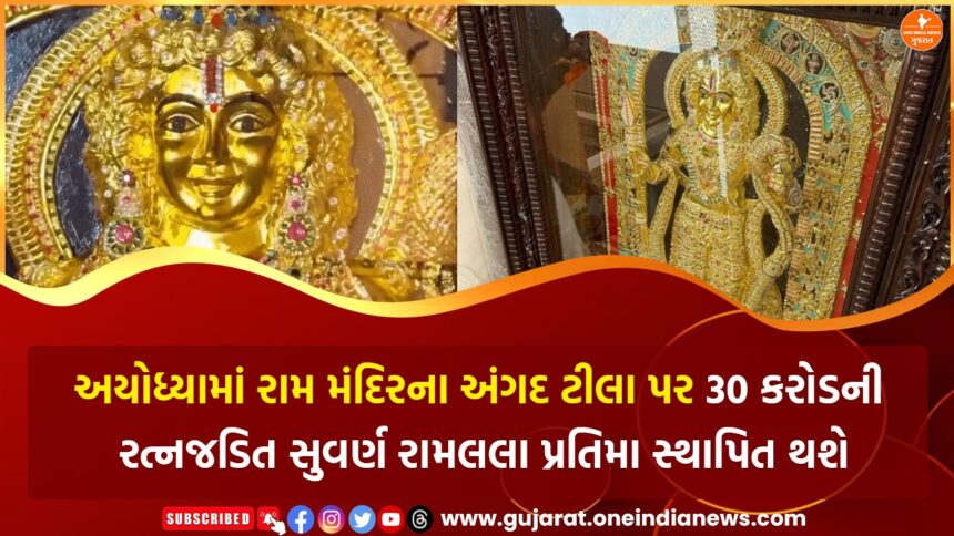 અયોધ્યાના રામલલા મંદિર પરિસરમાં ટૂંક સમયમાં એક અદભૂત અને અતિમૂલ્યવાન સુવર્ણ પ્રતિમા સ્થાપિત થવાની છે. કર્ણાટકના એક અજ્ઞાત ભક્ત દ્વારા ભેટરૂપે અર્પણ કરાયેલી આ પ્રતિમા મંગળવારે સાંજે અયોધ્યા પહોંચી હતી. હીરા, માણેક અને પન્ના જેવા કિંમતી રત્નોથી સજ્જ આ સુવર્ણ પ્રતિમાની અંદાજિત કિંમત રૂ. 30 કરોડ જેટલી હોવાનું મનાય છે.