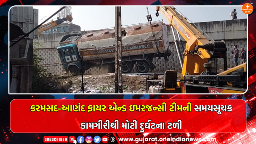 One India News > News > Anand > કરમસદ-આણંદ ફાયર એન્ડ ઇમરજન્સી ટીમની સમયસૂચક કામગીરીથી મોટી દુર્ઘટના ટળી