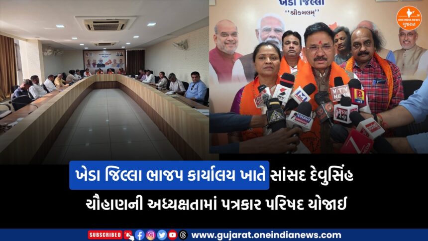 ખેડા જિલ્લા ભાજપ કાર્યાલય ખાતે કેન્દ્રીય બજેટ ૨૦૨૬ના સંદર્ભમાં એક પત્રકાર પરિષદનું આયોજન કરવામાં આવ્યું હતું. જેમાં ખેડાના સાંસદ દેવુસિંહ ચૌહાણે બજેટના વિવિધ પાસાઓ અને તેની દેશના વિકાસ પર થનારી અસરો અંગે વિગતો રજૂ કરી હતી.