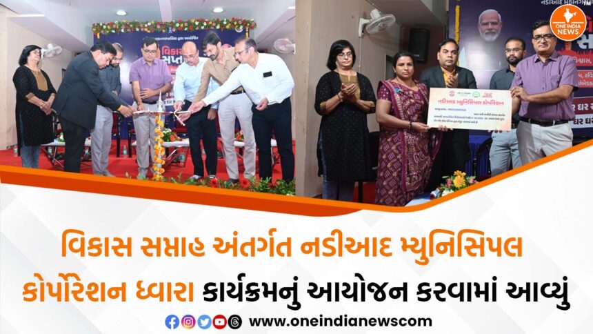 રાજ્ય સરકાર અને શહેરી વિકાસ વિભાગના માર્ગદર્શન મુજબ વિકાસ સપ્તાહ અંતર્ગત નડીઆદ મ્યુનિસિપલ કોર્પોરેશન ધ્વારા આંબેડકર હોલ, નડીઆદ ખાતે કાર્યક્રમનું આયોજન કરવામાં આવ્યું.