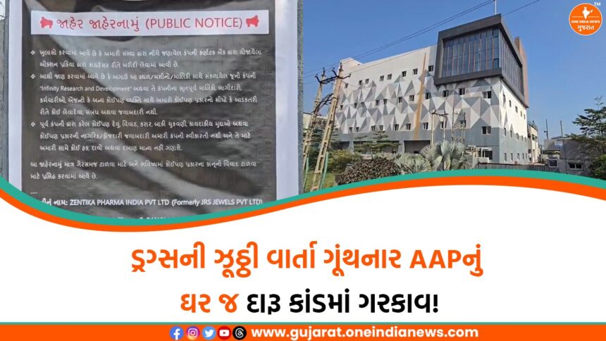 ડ્રગ્સ અને દારૂ મુદ્દે સરકાર અને પોલીસ પર સતત આક્ષેપોની હારમાળા ગુંથતી આમ આદમી પાર્ટી (AAP) આજે પોતાના જ આગેવાનોના કાંડોમાં ફસાઈ ગઈ છે. પાનોલીની ઇન્ફિનિટી રિસર્ચ એન્ડ ડેવલોપમેન્ટ કંપનીને લઈ ડેડીયાપાડાના ધારાસભ્ય ચૈત્ર વસાવાએ કરેલા આક્ષેપો કંપનીના નવા ડિરેક્ટરો દ્વારા પાયા વિહોણા ગણાવવામાં આવ્યા છે.