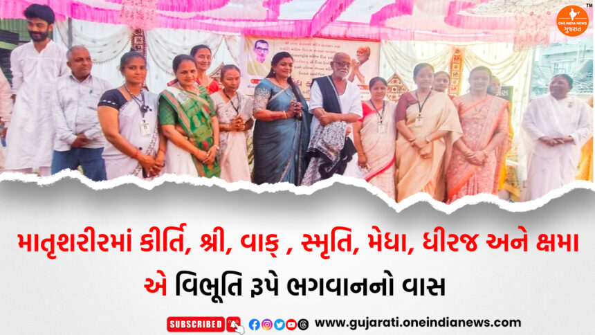 One India News > News > Bhavnagar > માતૃશરીરમાં કીર્તિ, શ્રી, વાક્ , સ્મૃતિ, મેધા, ધીરજ અને ક્ષમા એ વિભૂતિ રૂપે ભગવાનનો વાસ