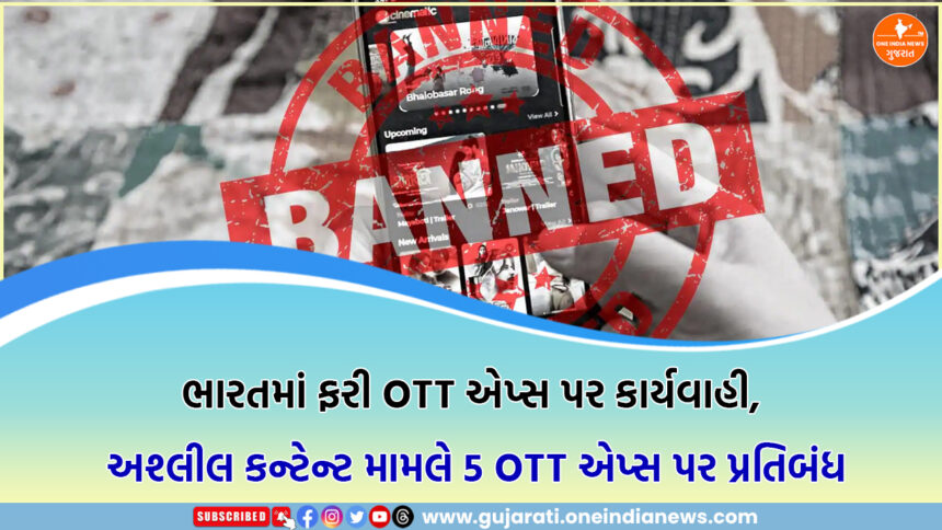 ભારતમાં ડિજિટલ પ્લેટફોર્મ પર ફેલાતી અશ્લીલ અને પોર્નોગ્રાફિક સામગ્રી સામે કડક કાર્યવાહી કરતા Ministry of Information and Broadcasting (MIB)એ મોટો નિર્ણય લીધો છે. સરકારે ઓનલાઈન પ્લેટફોર્મ પર સ્વચ્છ અને જવાબદાર કન્ટેન્ટ જાળવવાના હેતુથી 5 લોકપ્રિય OTT એપ્લિકેશનો પર તાત્કાલિક અસરથી પ્રતિબંધ મૂકી દીધો છે. સરકારનું કહેવું છે કે આ એપ્સ પર પ્રસારિત થતી સામગ્રી દેશના નૈતિક મૂલ્યોને અસર કરતી હતી અને ખાસ કરીને મહિલાઓ તથા બાળકોના માનસિક સ્વાસ્થ્ય પર નકારાત્મક અસર પડી શકે તેવી હતી. આ નિર્ણય સાથે સરકારે સ્પષ્ટ સંદેશ આપ્યો છે કે ડિજિટલ પ્લેટફોર્મ પર અશ્લીલ કન્ટેન્ટને કોઈ પણ પરિસ્થિતિમાં સહન કરવામાં આવશે નહીં.