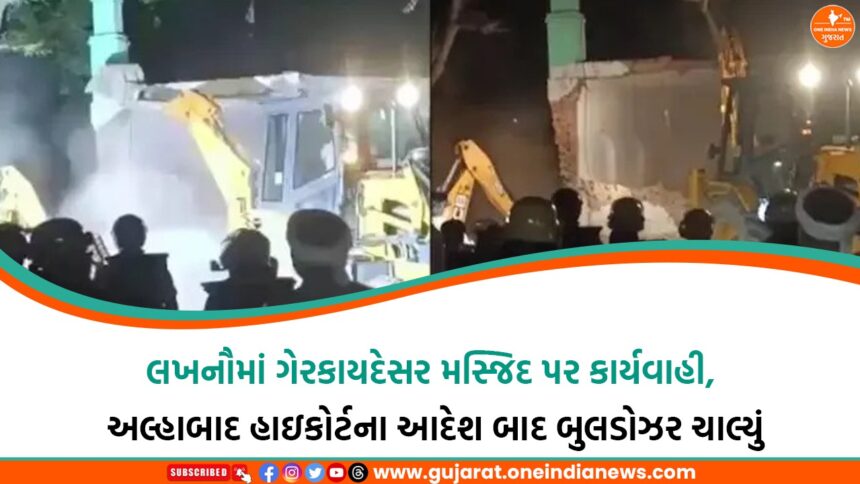 ઉત્તર પ્રદેશના પાટનગર લખનૌમાં બક્ષી કા તાલાબ (BKT) વિસ્તારમાં સરકારી જમીન પર બનેલી ગેરકાયદેસર મસ્જિદને બુધવારે મોડી રાત્રે બુલડોઝર વડે તોડી પાડવામાં આવી હતી. આ કાર્યવાહી અલ્હાબાદ હાઇકોર્ટની લખનૌ બેન્ચના સ્પષ્ટ આદેશ બાદ હાથ ધરાઈ હતી. લગભગ એક કલાક સુધી ચાલેલી આ ઓપરેશન દરમિયાન તંત્રએ ત્રણ બુલડોઝરનો ઉપયોગ કરીને નિર્ધારિત સમયમાં કામ પૂર્ણ કર્યું હતું.