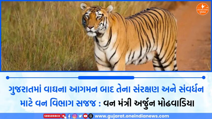 One India News > News > Gujarat > ગુજરાતમાં વાઘના આગમન બાદ તેના સંરક્ષણ અને સંવર્ધન માટે વન વિભાગ સજજ : વન મંત્રી અર્જુન મોઢવાડિયા