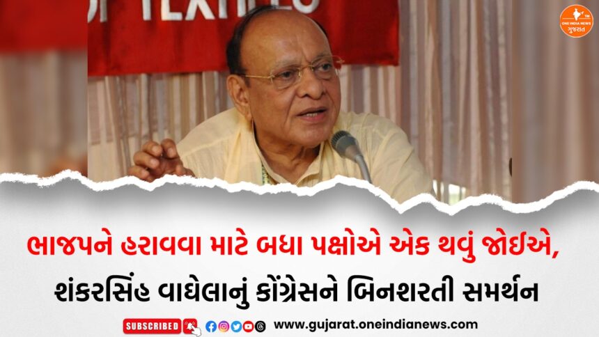 ભાજપને હરાવવા માટે બધા પક્ષોએ એક થવું જોઈએ, શંકરસિંહ વાઘેલાનું કોંગ્રેસને બિનશરતી સમર્થન