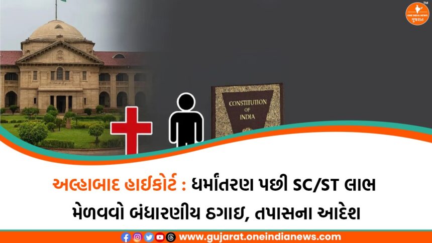 અલ્હાબાદ હાઈકોર્ટે તાજેતરમાં ધર્માંતરણ બાદ અનુસૂચિત જાતિ (SC) અને અનુસૂચિત જનજાતિ (ST)ના લાભ મેળવવા ચાલુ રાખનારાઓ સામે કડક વલણ દાખવ્યું છે અને આ પ્રકારના વર્તનને ‘બંધારણ સાથે ફ્રોડ’ ગણાવી કેન્દ્ર અને રાજ્ય સરકારને તપાસના આદેશ આપ્યા છે. આ ચુકાદો જસ્ટિસ પ્રવીણ કુમાર ગિરીની સિંગલ-જજ બેન્ચે 21 નવેમ્બર, 2025ના રોજ આપ્યો હતો. હાઈકોર્ટે કેન્દ્ર અને ઉત્તર પ્રદેશ સરકારને નોટિસ મોકલી આવા કેસોની તપાસ કરવા અને નિયમાનુસાર કાર્યવાહી કરવા માટે સુનિશ્ચિત કરવા આદેશ આપ્યો છે.