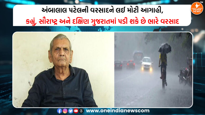 ભરુચ અને સુરતમાં ભારે વરસાદ પડી શકે : અંબાલાલ પટેલ