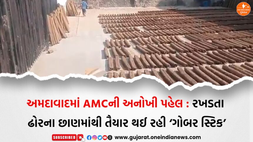 અમદાવાદ શહેરમાં રખડતા ઢોરની સમસ્યા દૂર કરવા સાથે સાથે આવક અને ઈંધણનું નવું સ્ત્રોત ઉભું કરવા માટે Ahmedabad Municipal Corporation (AMC)એ અનોખી પહેલ શરૂ કરી છે. શહેરના ઢોર અંકુશ વિભાગ Cattle Nuisance Control Department દ્વારા ગાય અને ભેંસના છાણમાંથી ‘ગોબર સ્ટિક’ તૈયાર કરવામાં આવી રહી છે, જે રાંધણ ગેસનો સસ્તો અને પર્યાવરણમિત્ર વિકલ્પ બની શકે છે. આ પહેલનો મુખ્ય ઉદ્દેશ શહેરમાં રખડતા ઢોરના છાણનો યોગ્ય ઉપયોગ કરીને સ્વચ્છતા જાળવવી અને સાથે ઊર્જા વિકલ્પ પણ ઉપલબ્ધ કરાવવાનો છે.