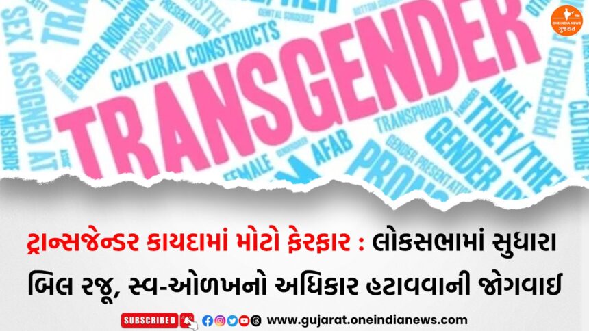 One India News > News > Gujarat > ટ્રાન્સજેન્ડર કાયદામાં મોટો ફેરફાર : લોકસભામાં સુધારા બિલ રજૂ, સ્વ-ઓળખનો અધિકાર હટાવવાની જોગવાઈ