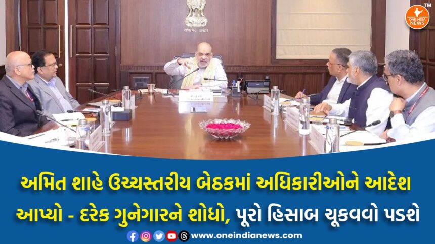 આ ઘટનાને ગંભીરતાથી લઈ કેન્દ્રીય ગૃહમંત્રી અમિત શાહે તાત્કાલિક ઉચ્ચસ્તરીય બેઠક બોલાવી હતી. બેઠકમાં ગૃહ સચિવ ગોવિંદ મોહન, ઈન્ટેલિજન્સ બ્યુરો (IB) ડિરેક્ટર તપન ડેકા, દિલ્હી પોલીસ કમિશનર સતીશ ગોલચા અને NIA ડિરેક્ટર જનરલ સદાનંદ વસંત દાતે હાજર રહ્યા હતા, જ્યારે જમ્મુ-કાશ્મીરના DGP નલિન પ્રભાત વર્ચ્યુઅલી જોડાયા હતા. બેઠક દરમિયાન અમિત શાહે તમામ એજન્સીઓને સ્પષ્ટ આદેશ આપ્યો કે “આ ઘટનામાં સામેલ દરેક ગુનેગારને શોધી કાઢો અને તેમને કાયદાના કટઘરામાં લાવો.” તેમણે કડક શબ્દોમાં કહ્યું કે “આ કૃત્યમાં સામેલ દરેક વ્યક્તિએ પૂરો હિસાબ ચૂકવવો પડશે.” બાદમાં શાહે સોશિયલ મીડિયા પ્લેટફોર્મ ‘X’ પર પણ આ બેઠકની વિગતો જાહેર કરી અને જણાવ્યું કે દિલ્હીની સુરક્ષા માટે કોઈપણ પ્રકારની ઢિલાઈ સ્વીકારવામાં નહીં આવે.