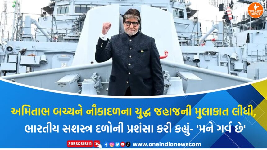 બોલીવુડના મહાનાયક અમિતાભ બચ્ચને તાજેતરમાં ભારતીય નૌકાદળના યુદ્ધ જહાજની મુલાકાત લીધી હતી અને એ જહાજ પર આખો દિવસ વિતાવીને પોતાનો અત્યંત ગૌરવભર્યો અનુભવ સોશિયલ મીડિયામાં શેર કર્યો હતો. તેમણે પોતાની મુલાકાતની કેટલીક તસવીરો x (હવે Twitter) પર પોસ્ટ કરી અને ભારતીય સશસ્ત્ર દળોની અસાધારણ સમર્પણભાવના અને શક્તિ વિશે ગર્વ સાથે લખ્યું, “આપણા દળોની તાકાત, આપણા યોદ્ધાઓના સમર્પણ અને ભારત માટે તેમના અતૂટ યોગદાનને મારો સલામ.”