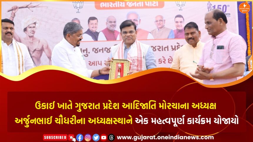 તાપી જિલ્લાના ઉકાઈ ખાતે આવેલ વીઆઇપી ગેસ્ટ હાઉસ ખાતે ગુજરાત પ્રદેશ આદિજાતિ મોરચા ના અધ્યક્ષ અર્જુનભાઈ ચૌધરીના અધ્યક્ષ સ્થાને કાર્યક્રમ યોજાયો હતો જેમાં રાજ્યના માનનીય કેબિનેટ મંત્રી નરેશ પટેલ, રાજ્યકક્ષાના મંત્રી પી.સી. બરંડા, બારડોલી લોકસભા સાંસદ પ્રભુભાઈ વસાવા, ધારાસભ્ય ગણપતસિંહ વસાવા,