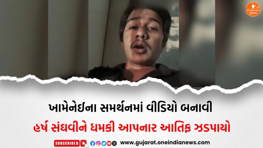 રાજકોટમાં સોશિયલ મીડિયા પર ઈરાનના નેતાના સમર્થનમાં વિવાદાસ્પદ વીડિયો બનાવી પોલીસ અને ગુજરાતના ગૃહ રાજ્યમંત્રી હર્ષ સંઘવીને ધમકી આપનાર યુવકની ધરપકડ કરવામાં આવી છે. રાજકોટ સાયબર ક્રાઈમ પોલીસે ટેકનિકલ સર્વેલન્સના આધારે આરોપીને તેલંગાણાના હૈદરાબાદથી ઝડપી પાડ્યો છે.