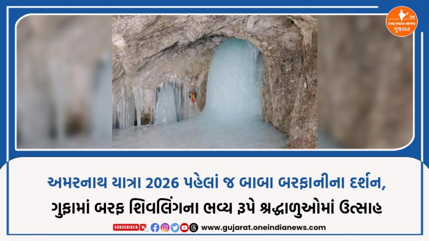 પવિત્ર અમરનાથ યાત્રા 2026 શરૂ થવામાં હજુ થોડો સમય બાકી છે, પરંતુ આ પહેલાં જ પવિત્ર ગુફામાંથી બાબા બરફાનીના પ્રથમ દર્શન સામે આવતા શ્રદ્ધાળુઓમાં ભારે ઉત્સાહ જોવા મળી રહ્યો છે. આ વર્ષે ગુફામાં બનેલું કુદરતી બરફનું શિવલિંગ વધુ ભવ્ય અને સંપૂર્ણ આકારમાં જોવા મળ્યું છે, જેને ભક્તો શુભ સંકેત તરીકે જોઈ રહ્યા છે.