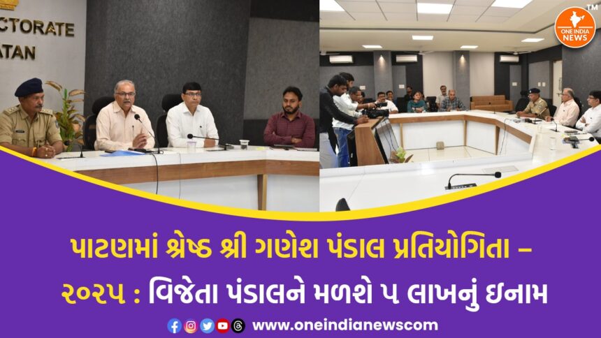 One India News > News > Gujarat > પાટણમાં શ્રેષ્ઠ શ્રી ગણેશ પંડાલ પ્રતિયોગિતા – ૨૦૨૫ : વિજેતા પંડાલને મળશે ૫ લાખનું ઇનામ