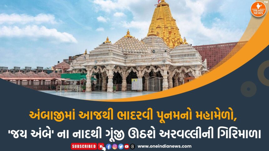 શક્તિપીઠ અંબાજી ખાતે ભાદરવી પૂનમના મહામેળાનો પ્રારંભ આજથી (1 સપ્ટેમ્બર) ભવ્ય રીતે થયો છે, જે સાતમી સપ્ટેમ્બર સુધી ચાલશે. આ મહામેળામાં આશરે 30 લાખથી વધુ ભક્તો માતા અંબાના ચરણોમાં શિશ ઝૂકાવવા માટે ઉમટી પડશે તેવી ધારણા છે. હાલ અંબાજી મંદિર તરફ જતાં માર્ગો પર સંઘો અને યાત્રાળુઓનો ભારે પ્રવાહ જોવા મળી રહ્યો છે. ખાસ વાત એ છે કે આ વર્ષે 7મી સપ્ટેમ્બર, ભાદરવી પૂનમના મુખ્ય દિવસે ચંદ્રગ્રહણ હોવાથી સાંજે 5 વાગ્યા બાદ મંદિરના દર્શન બંધ રહેશે.