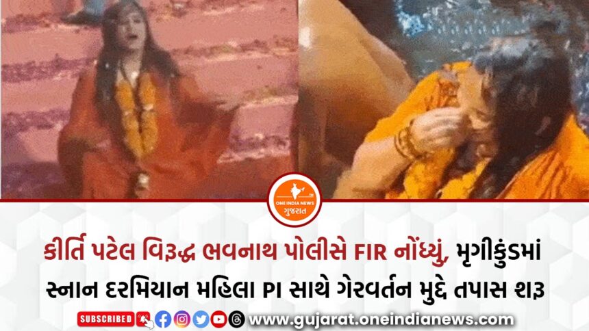 ગુજરાતના જૂનાગઢમાં મહા શિવરાત્રિના મેળામાં કીર્તિ પટેલને લઇને ફરી એક વખત વિવાદ ઉઠ્યો છે. સોશિયલ મીડિયા પર સતત ચર્ચામાં રહેતી કીર્તિ પટેલે મેળામાં આવેલા મૃગીકુંડમાં સ્નાન કર્યા, જેમાં તેણે ભગવા વસ્ત્રો પહેરી નાગા સાધુઓ અને સંતો વચ્ચે મૃગીકુંડમાં ઘૂસી ડૂબકી લગાવી હતી. આ ઘટનાથી પ્રાચીન પરંપરા અને ધાર્મિક ભક્તિની લાગણીઓ સાથે અથડામણ થઈ હોવાનું જણાવાય છે. મૃગીકુંડમાં સ્નાન દરમિયાન કીર્તિ પટેલ અને એક મહિલા PI વચ્ચે ઘર્ષણ પણ જોવા મળ્યું હતું, જેના પગલે PI કે.જે. મોડે ભવનાથ પોલીસ સ્ટેશનમાં કીર્તિ પટેલ વિરુદ્ધ ગેરવર્તન અને નિયમોનું ભંગ કરવા અંગે કાયદેસરની ફરિયાદ નોંધાવી છે.