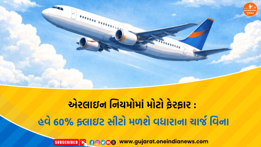 ભારતમાં હવાઈ મુસાફરીને વધુ સુલભ અને પારદર્શક બનાવવા માટે Ministry of Civil Aviation દ્વારા મહત્વપૂર્ણ નવા નિર્દેશો જાહેર કરવામાં આવ્યા છે. બુધવારે જાહેર કરાયેલા આ માર્ગદર્શિકા મુજબ હવે દરેક ફ્લાઇટમાં ઓછામાં ઓછી 60 ટકા સીટો મુસાફરોને કોઈપણ વધારાના ચાર્જ વિના ઉપલબ્ધ કરાવવાની રહેશે. આ નિર્ણયનો મુખ્ય હેતુ મુસાફરો માટે સમાન તક સુનિશ્ચિત કરવાનો અને એરલાઇન સેવાઓને વધુ ગ્રાહક-મૈત્રીપૂર્ણ બનાવવાનો છે.
