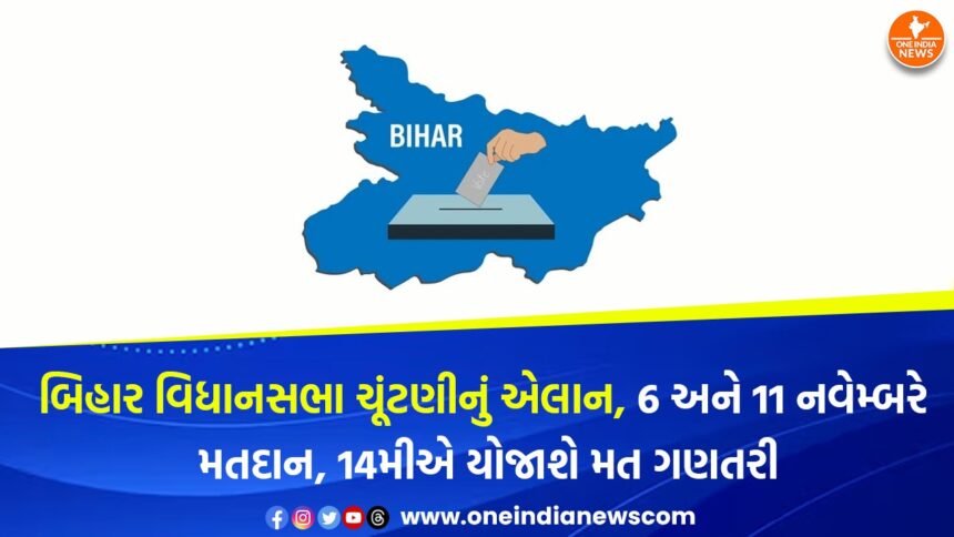 બિહાર વિધાનસભાની કુલ 243 બેઠકો માટેની ચૂંટણી આ વખતે બે તબક્કામાં યોજાવાની છે. મુખ્ય ચૂંટણી કમિશનર જ્ઞાનેશ કુમારે જાહેરાત કરતાં જણાવ્યું કે પ્રથમ તબક્કાની ચૂંટણી 6 નવેમ્બરના રોજ અને બીજા તબક્કાની ચૂંટણી 11 નવેમ્બરના રોજ યોજાશે, જ્યારે મતગણતરી 14 નવેમ્બરે થશે. પ્રથમ તબક્કાની ચૂંટણી માટેનું ગેજેટ નોટિફિકેશન 10 ઓક્ટોબરે બહાર પાડવામાં આવશે, ઉમેદવારી નોંધાવવાની છેલ્લી તારીખ 17 ઓક્ટોબર હશે, ઉમેદવારીની સ્ક્રુટની 22 ઓક્ટોબરે થશે અને ઉમેદવારોને 24 ઓક્ટોબર સુધી નામ પાછું ખેંચવાની છૂટ રહેશે. આ વખતની ચૂંટણી બે તબક્કામાં યોજાય તેવી માગણી ભાજપ અને આરજેડી બંનેએ કરી હતી, જ્યારે 2020માં બિહાર વિધાનસભાની ચૂંટણી ત્રણ તબક્કામાં યોજાઈ હતી.