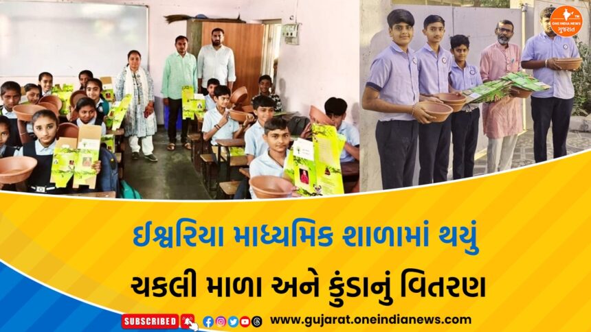 શિક્ષણ સાથે જ પ્રકૃતિ પર્યાવરણ પ્રત્યે સંવેદના પ્રગટે તે જરૂરી છે, આ માટે ઈશ્વરિયા સરકારી માધ્યમિક શાળામાં ચકલી માળા અને પાણીનાં કુંડાનું વિનામૂલ્યે વિતરણ કરવામાં આવ્યું છે.
