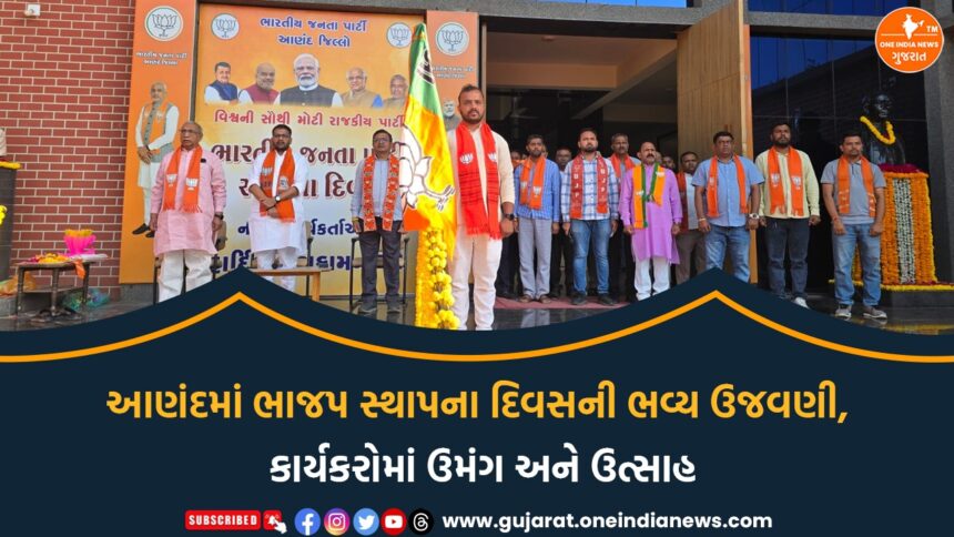 ભારતીય જનતા પાર્ટીના સ્થાપના દિવસ નિમિત્તે આણંદ જિલ્લાના નાવલી સ્થિત ભાજપ કાર્યાલય ખાતે ભવ્ય કાર્યક્રમનું આયોજન કરવામાં આવ્યું હતું. કાર્યક્રમમાં જિલ્લાના અગ્રણી નેતાઓ તેમજ મોટી સંખ્યામાં કાર્યકરો ઉપસ્થિત રહી પક્ષના ગૌરવશાળી ઇતિહાસને યાદ કર્યો હતો.