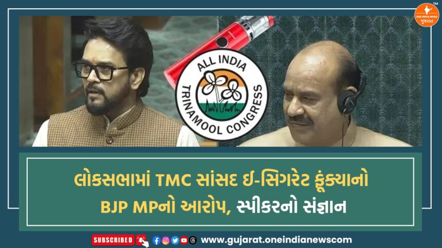 લોકસભામાં અત્યારે શિયાળુ સત્ર ચાલી રહ્યું છે. આજે લોકસભામાં ભારતીય જનતા પાર્ટીના સાંસદ અનુરાગ ઠાકુરે તૃણમૂલ કોંગ્રેસના સાંસદ પર ગંભીર આરોપ લગાવ્યો. અનુરાગ ઠાકુરે સંસદમાં નામ લીધા વિના કહ્યું કે તૃણમૂલ કોંગ્રેસના સાંસદ લોકસભામાં બેસીને ઈ-સિગારેટ પીવે છે.