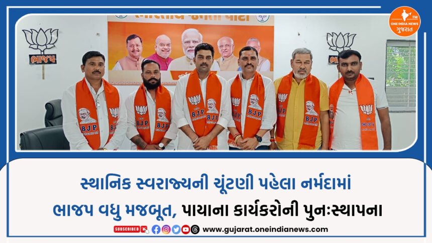 સ્થાનિક સ્વરાજ્યની ચૂંટણી નજીક આવતા નર્મદા જિલ્લામાં રાજકીય માહોલ ગરમાયો છે. આવી સ્થિતિમાં ભારતીય જનતા પાર્ટી (ભાજપ) સંગઠન સ્તરે વધુ મજબૂત બનતી નજરે પડી રહી છે. ખાસ કરીને પક્ષના પાયાના અને નિષ્ઠાવાન કાર્યકરોની પુનઃસ્થાપનાથી ભાજપની સંગઠન શક્તિમાં નોંધપાત્ર વધારો થયો છે.