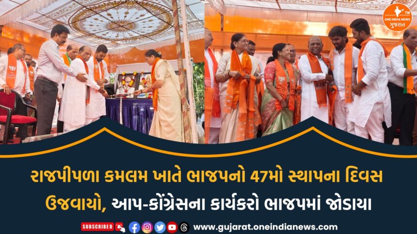 One India News > News > Gujarat > રાજપીપળા કમલમ ખાતે ભાજપનો 47મો સ્થાપના દિવસ ઉજવાયો, આપ-કોંગ્રેસના કાર્યકરો ભાજપમાં જોડાયા