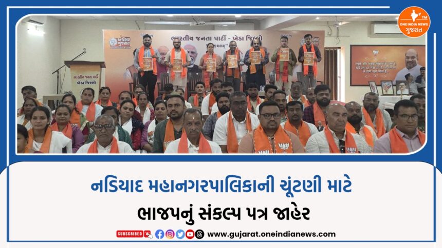 નડિયાદમાં ડભાણ રોડ સ્થિત ભાજપ કાર્યાલય ‘કમલમ’ ખાતે ભારતીય જનતા પાર્ટી દ્વારા આગામી મહાનગરપાલિકાની ચૂંટણીને ધ્યાનમાં રાખીને સંકલ્પ પત્રનું વિમોચન કરવામાં આવ્યું હતું. આ કાર્યક્રમમાં કેબિનેટ મંત્રી અને ખેડા જિલ્લાના પ્રભારી રમણભાઈ સોલંકી, ખેડા જિલ્લા ભાજપ અધ્યક્ષ નયનાબેન પટેલ તેમજ નડિયાદના ધારાસભ્ય પંકજભાઈ દેસાઈ વિશેષ ઉપસ્થિત રહ્યા હતા.