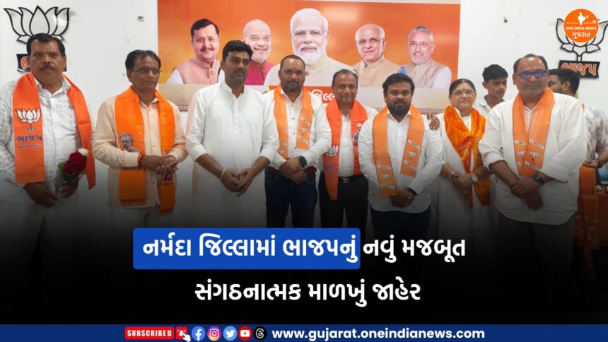 નર્મદા જિલ્લા ભારતીય જનતા પાર્ટી (ભાજપ)નું નવું સંગઠનાત્મક માળખું તાજેતરમાં સત્તાવાર રીતે જાહેર કરવામાં આવ્યું હતું. આ અનુસંધાને આજે જિલ્લા કમલમ કાર્યાલય ખાતે યોજાયેલી મહત્વપૂર્ણ બેઠકમાં સંગઠનને વધુ ઘનિષ્ઠ અને મજબૂત બનાવવાનો તેમજ કેન્દ્ર અને રાજ્ય સરકારની જનકલ્યાણકારી યોજનાઓ છેવાડાના છેવાડા સુધી પહોંચાડવાનો મહત્વાકાંક્ષી સંકલ્પ લેવામાં આવ્યો.