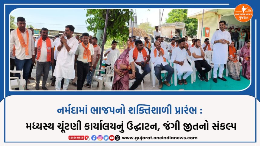 સ્થાનિક સ્વરાજ્ય સંસ્થાની સામાન્ય ચૂંટણી – ૨૦૨૬ને ધ્યાનમાં રાખીને નર્મદા જિલ્લામાં રાજકીય ગરમાવો તેજ બન્યો છે. આ પરિસ્થિતિમાં ભારતીય જનતા પાર્ટી (ભાજપ) દ્વારા ભદામ જિલ્લા પંચાયત માટે મધ્યસ્થ ચૂંટણી કાર્યાલયનું ઉદ્ઘાટન જિલ્લા ભાજપ અધ્યક્ષ નીલકુમાર રાવના હસ્તે કરવામાં આવ્યું હતું.