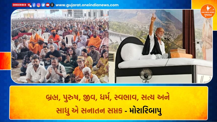 One India News > News > Bhavnagar > બ્રહ્મ, પુરુષ, જીવ, ધર્મ, સ્વભાવ, સત્ય અને સાધુ એ સનાતન સપ્તક – મોરારિબાપુ