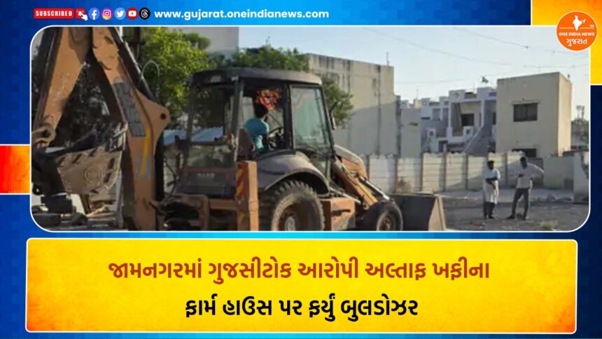 જામનગરમાં કાયદો-વ્યવસ્થાને લઈને મોટી કાર્યવાહી હાથ ધરવામાં આવી છે. જામનગરમાં ગુજસીટોક હેઠળ આરોપી અને સ્થાનિક સ્વરાજ્ય ચૂંટણીમાં કોંગ્રેસના ઉમેદવાર અલ્તાફ ખફીના ગેરકાયદેસર ફાર્મહાઉસ પર પ્રશાસને બુલડોઝર ફેરવ્યું છે. હાલ અલ્તાફ પોલીસ રિમાન્ડ હેઠળ હોવાનું જાણવા મળે છે.