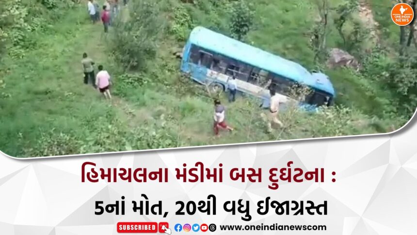 હિમાચલ પ્રદેશના મંડી જિલ્લામાં 24 જુલાઈના રોજ એક ગંભીર દુર્ઘટના સર્જાઈ છે, જેમાં સરકારી બસ ખીણમાં ખાબકતા પાંચ લોકોના મૃત્યુ થયા છે અને 20થી વધુ મુસાફરો ઈજાગ્રસ્ત થયા છે. મળતી માહિતી અનુસાર, દુર્ઘટના મંડી જિલ્લાના સરકાઘાટ વિસ્તારના તરાંગલા નજીક ઘટી હતી, જ્યાં HRTC (હિમાચલ રોડ ટ્રાન્સપોર્ટ કોર્પોરેશન)ની સરકારી બસ ખીણમાં પડી ગઈ હતી. આ બસ સરકાઘાટથી જામની દુર્ગાપુર તરફ જઈ રહી હતી, ત્યારે સવારે લગભગ 10 વાગ્યે સ્ટીયરિંગ પરથી ડ્રાઈવરનો કાબૂ છૂટી જતા બસ ઊંડી ખીણમાં ખાબકી હતી.