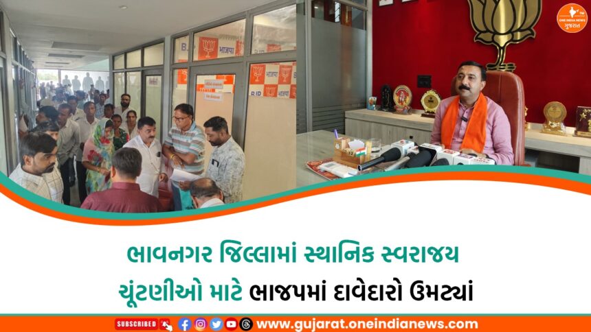 સ્થાનિક સ્વરાજય ચૂંટણીઓ માટે ભાવનગર જિલ્લામાં વિવિધ બેઠકો માટે ભાજપમાં દાવેદારો ઉમટ્યાં છે. પ્રદેશ નિરીક્ષકો સમક્ષ કાર્યકર્તાઓએ ઉમેદવારી માટે દાવેદારી રજૂ કરી રહ્યાં છે.