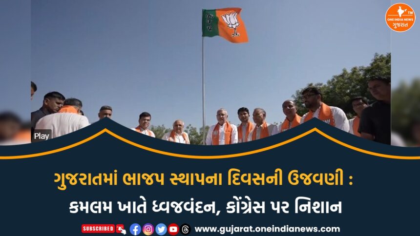 One India News > News > Gujarat > ગુજરાતમાં ભાજપ સ્થાપના દિવસની ઉજવણી : કમલમ ખાતે ધ્વજવંદન, કોંગ્રેસ પર નિશાન