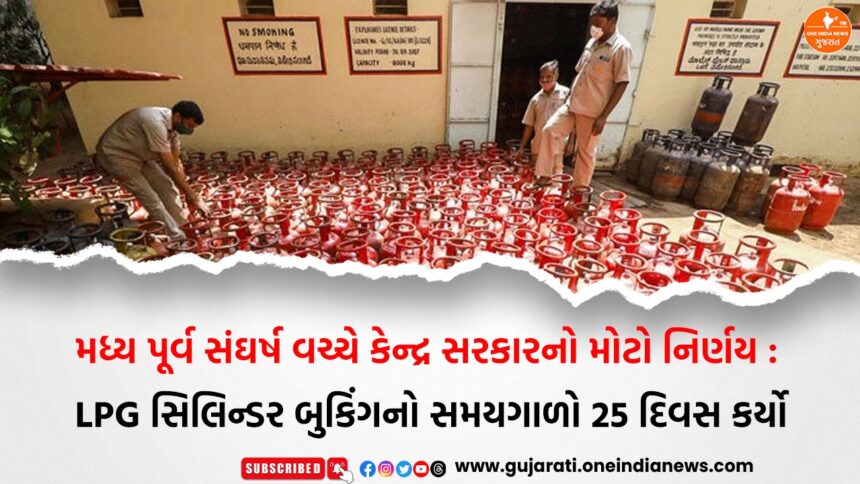 મધ્ય પૂર્વમાં વધી રહેલા તણાવ અને વૈશ્વિક ઊર્જા બજારમાં ઊભી થયેલી અનિશ્ચિતતાની વચ્ચે ભારત સરકારે ઘરેલુ LPG સિલિન્ડર અંગે મહત્વપૂર્ણ નિર્ણય લીધો છે. પેટ્રોલિયમ મંત્રાલયે ઘરેલુ ગેસ સિલિન્ડર માટે બુકિંગનો સમયગાળો વધારીને 25 દિવસ કરવાનો નિર્ણય કર્યો છે. સરકારના સૂત્રો અનુસાર, ગેસની કાળાબજારી અને સંગ્રહખોરીને રોકવા માટે આ પગલું લેવામાં આવ્યું છે. સરકારે સાથે સાથે સ્પષ્ટ કર્યું છે કે દેશમાં હાલ પેટ્રોલ, ડીઝલ અથવા LPG ગેસની કોઈ અછત નથી અને પુરવઠો સંપૂર્ણ રીતે સ્થિર છે.