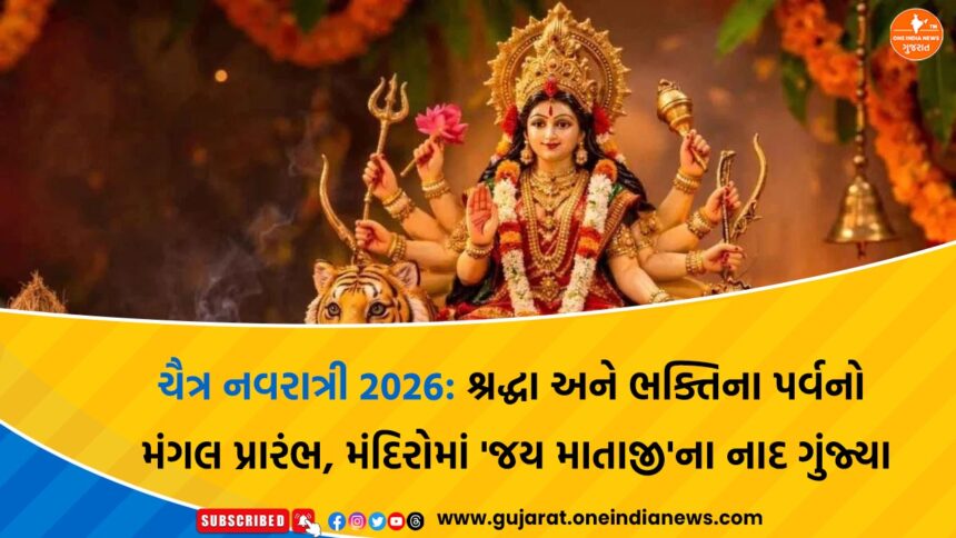 આજથી પવિત્ર ચૈત્ર નવરાત્રીનો આરંભ થતાં સમગ્ર દેશ સહિત ગુજરાતમાં ભક્તિ અને આસ્થાનો અનોખો માહોલ સર્જાયો છે. નવરાત્રીના પ્રથમ દિવસે ભક્તોએ શ્રદ્ધાપૂર્વક મા શૈલપુત્રીની આરાધના કરી હતી. વહેલી સવારથી જ મંદિરોમાં ઘંટનાદ, શંખધ્વનિ અને જયકારાના ગૂંજતા સ્વરો વચ્ચે ભક્તો મોટી સંખ્યામાં દર્શન માટે ઉમટી પડ્યા હતા.