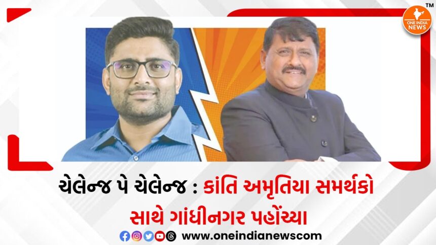 ગુજરાતમાં હાલમાં ચેલેન્જ પે ચેલેન્જનો ડ્રામા ચાલી રહ્યો છે. ત્યારે કાંતિ અમૃતિયા 100 જેટલી ગાડીઓ લઈને ગાંધીનગર રવાના પહોંચ્યા છે. જ્યાં તેઓ ગોપાલ ઇટાલીયા ની રાહ જોઈ એક કલાકમાં રાજીનામું આપવાની પ્રક્રિયા શરૂ કરશે. કાંતિ અમૃતિયાએ વિસાવદર આપના ધારાસભ્ય ગોપાલ ઇટાલિયાને મોરબીથી ચૂંટણી લડવાની ચેલેન્જ આપી હતી. ત્યારે હવે વગર ચૂંટણીએ ગુજરાતના રાજકારણમાં ગરમાવો આવી ગયો છે.