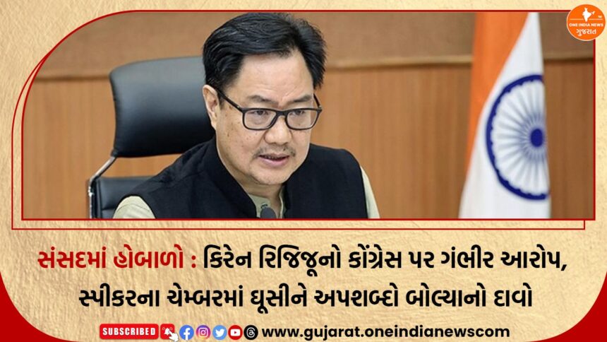 સંસદમાં હોબાળો : કિરેન રિજિજૂનો કોંગ્રેસ પર ગંભીર આરોપ, સ્પીકરના ચેમ્બરમાં ઘૂસીને અપશબ્દો બોલ્યાનો દાવો